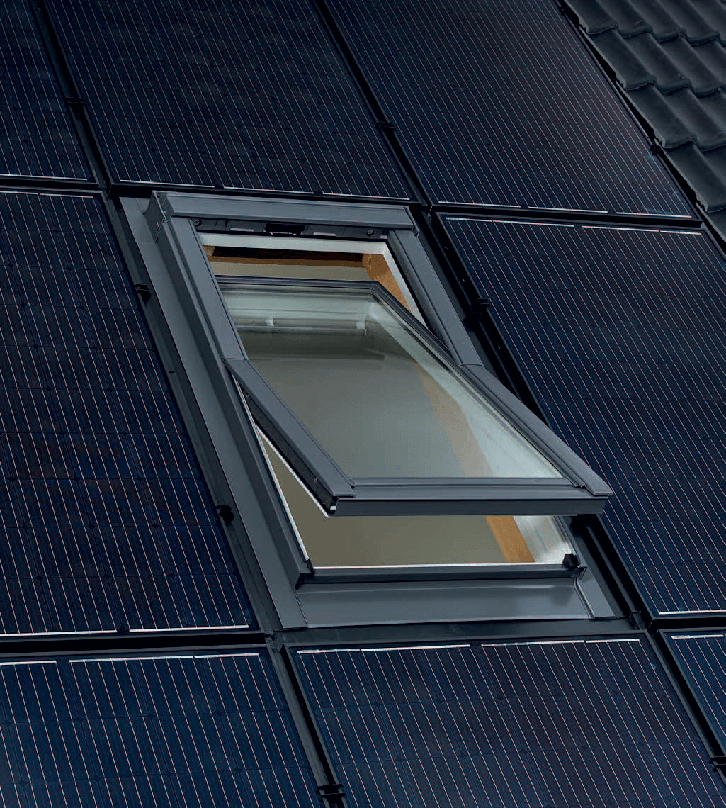 The new roof window connection system, VELUX Solar Integrator, allows a simple and attractive integration between VELUX roof windows and the GSE IN ROOF system integrated into the roof.