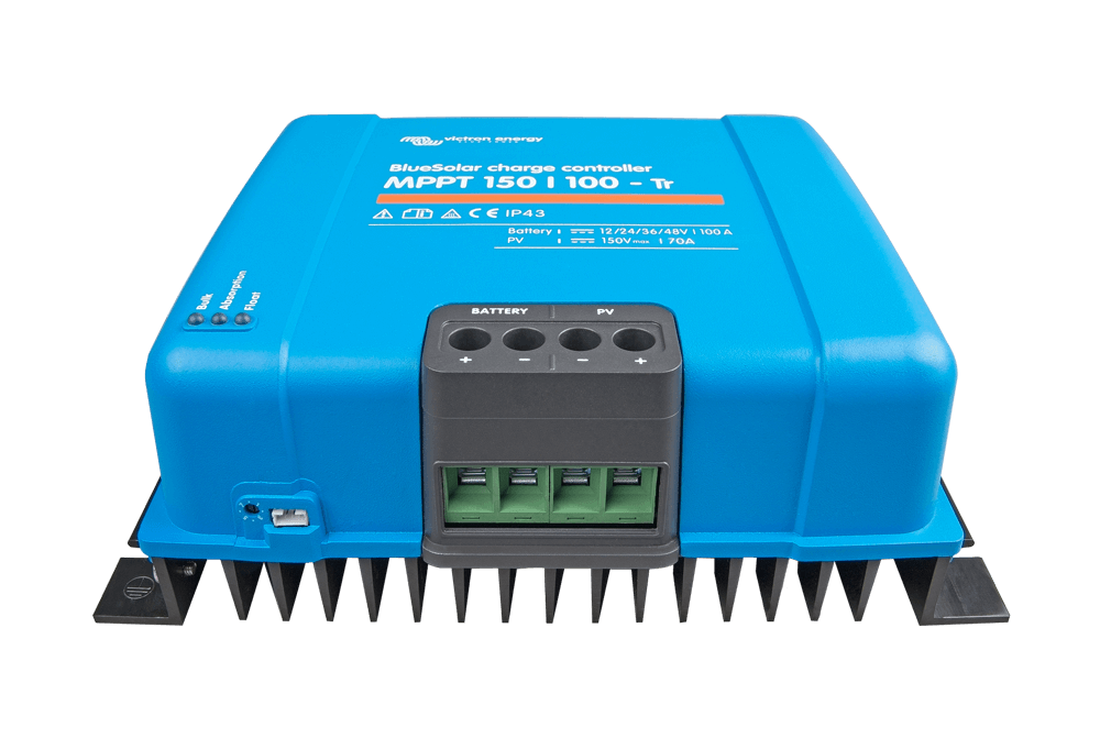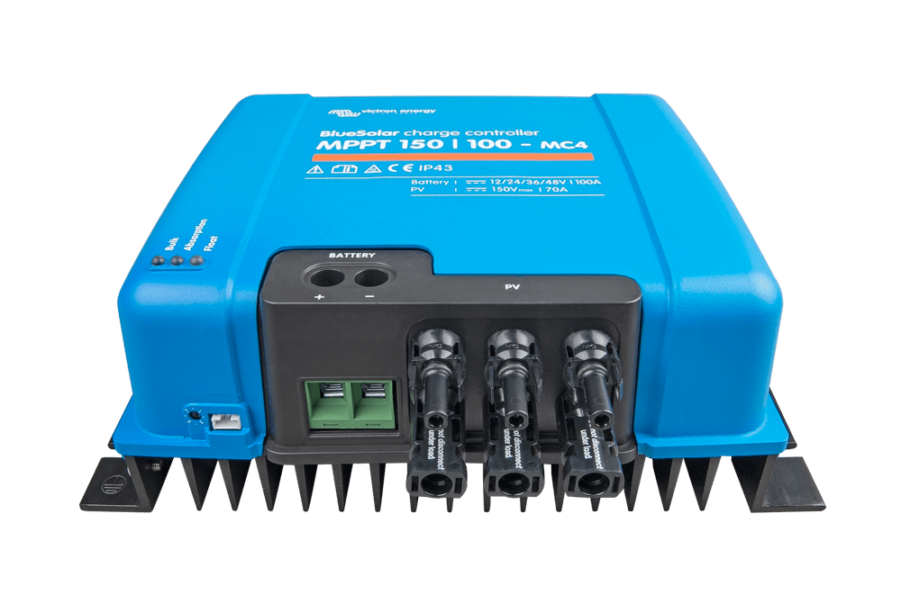 These Victron Blue Solar Charge Controller supports a PV input with a maximum open circuit voltage of either 150V or 250V and have a maximum output of up to 100A. It works with and will automatically recognise 12V, 24V and 48V battery systems (36V also possible via software configuration).
