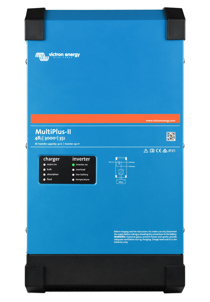 The MultiPlus-II is a multifunctional inverter/charger and is ideally suited for professional marine, yachting, vehicle and land based off-grid applications.