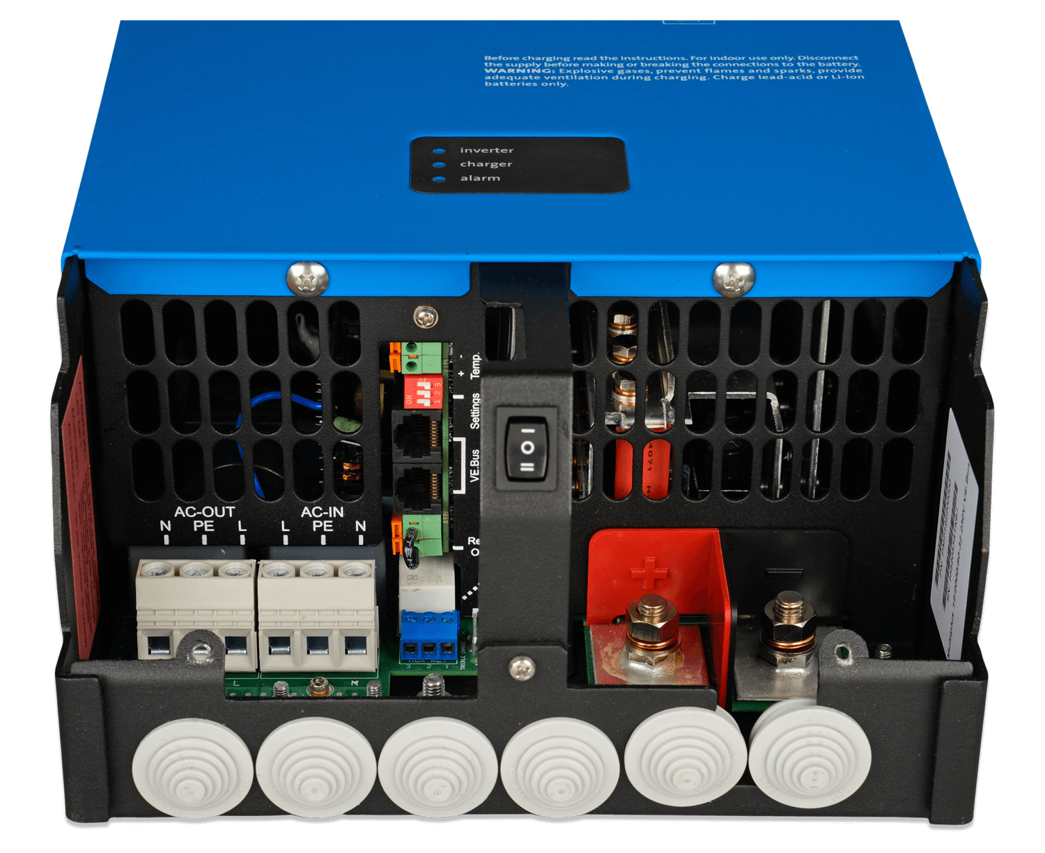 The MultiPlus is a powerful true sine wave inverter, a sophisticated battery charger that features adaptive charge technology and a high-speed AC transfer switch in a single compact enclosure.