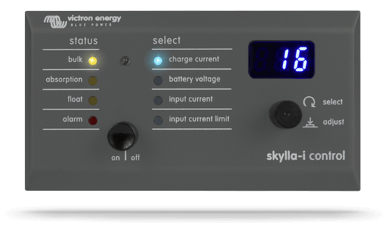 The Victron Skylla-i Control allows you to alter the charge current and see the system status of Victron Skylla battery chargers.