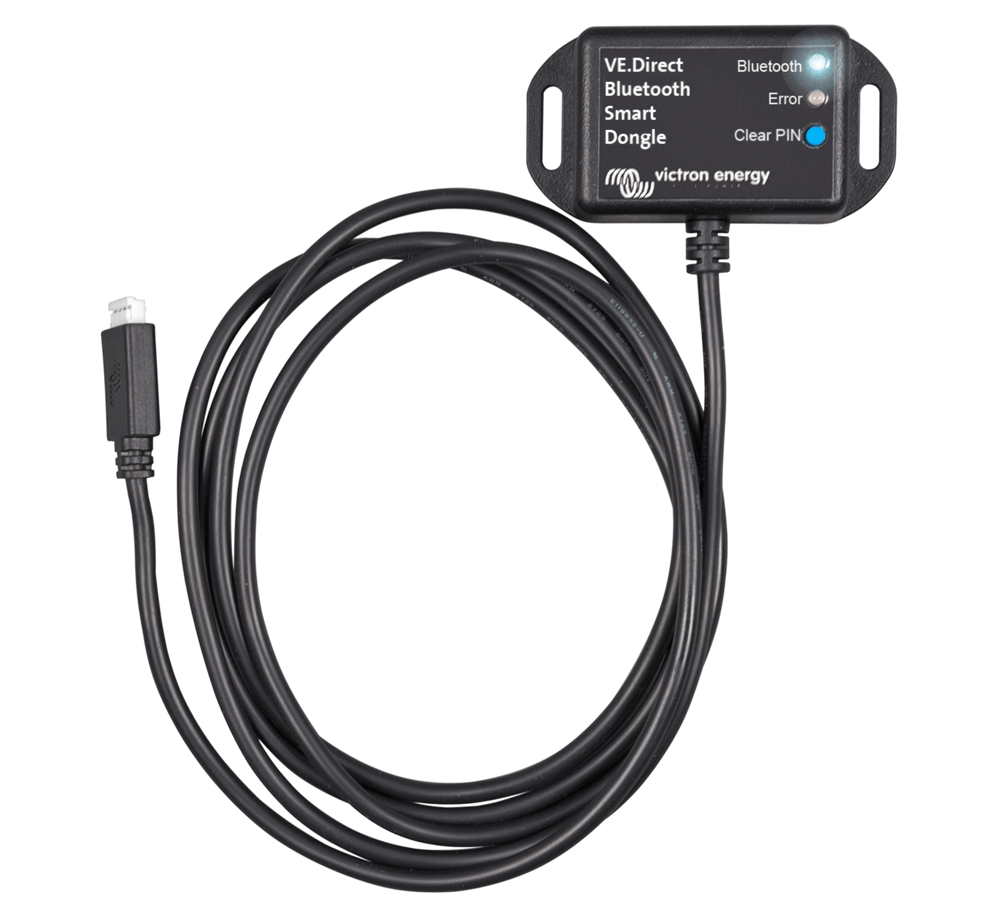 The Victron VE Direct Bluetooth Smart Dongle enables Victron MPPT Charge Controllers*, Battery Monitors* and Pheonix Inverters* to display information on IOS, Android, Windows or Mac OS X devices using the VictronConnect app.